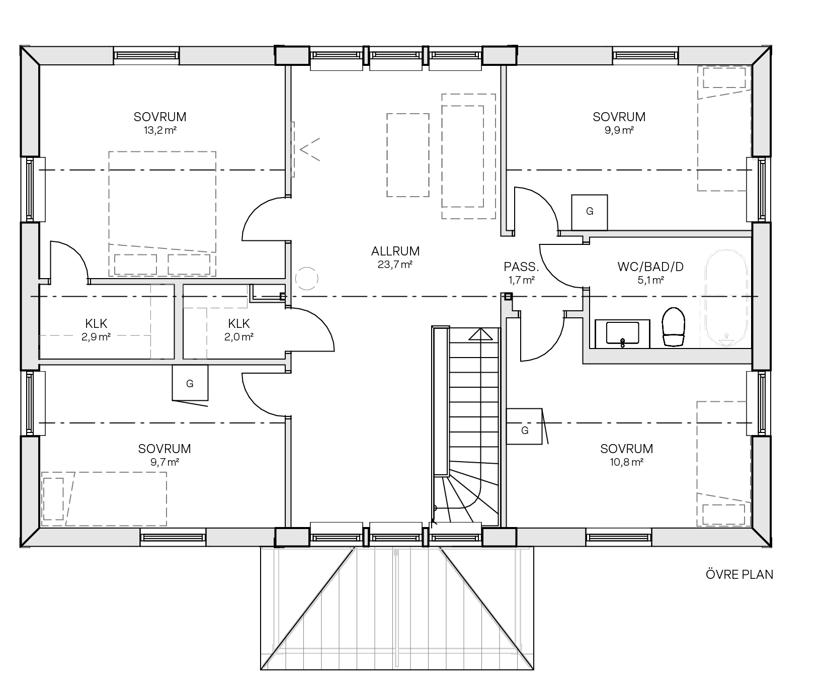 Boarea övre plan: 86,8 m2
